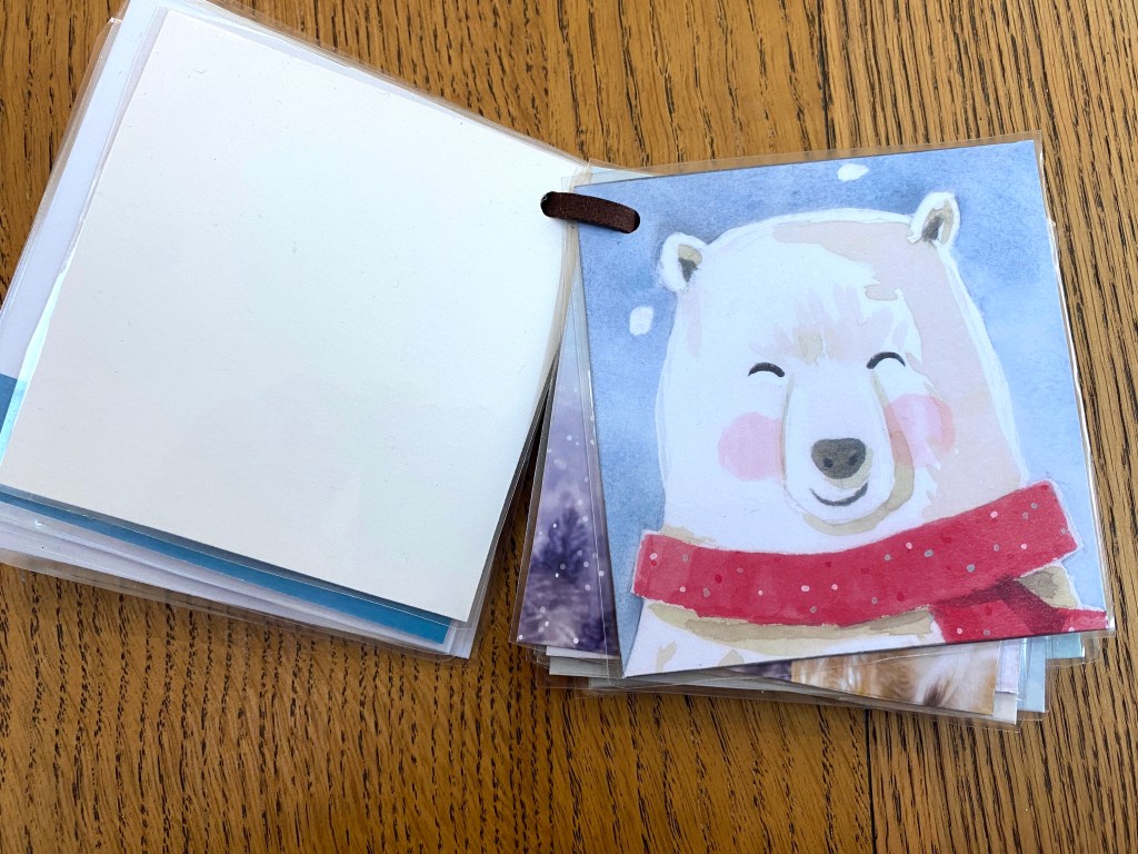 Old Christmas cards can be recycled as fidgets in lots of ways. Maybe re-using them to make new cards, or cutting out the pictures, laminating them, hole punching a hole in the corner, and putting them on a cord as a flip-view pack.