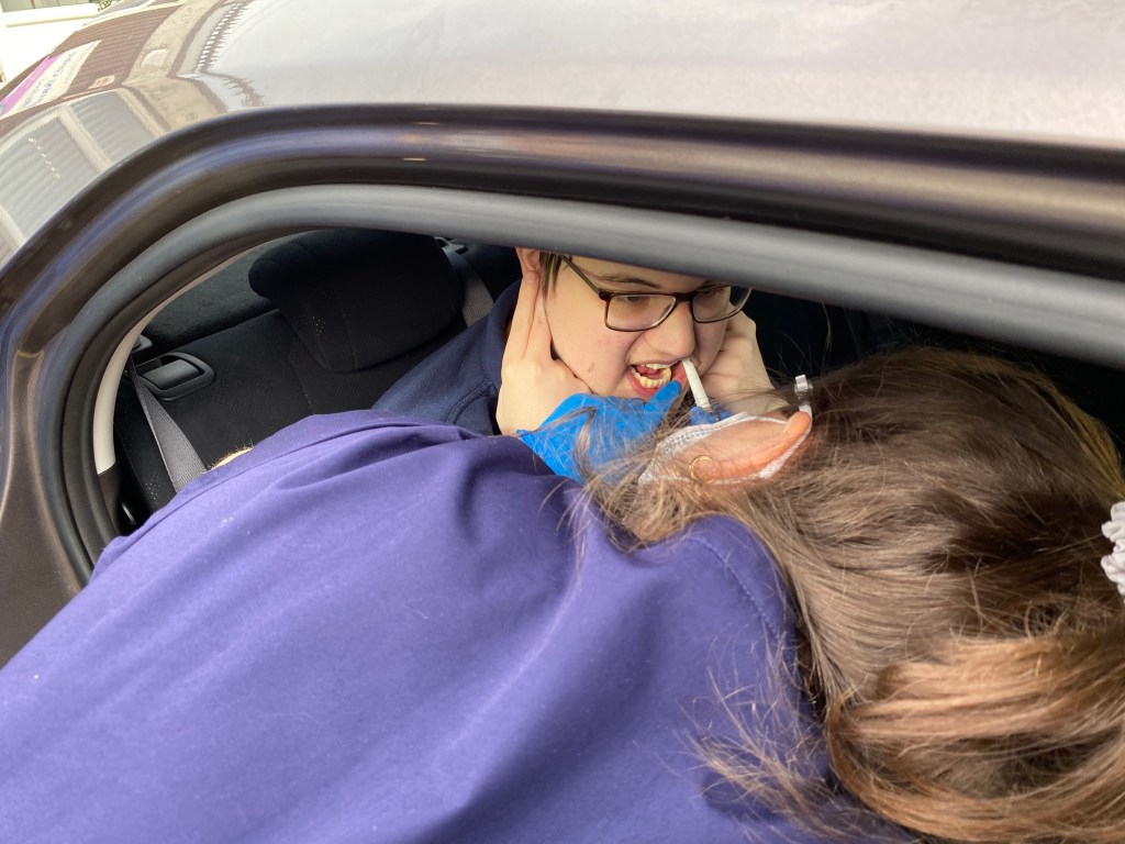 She returned to say that the children’s/youth dentist had agreed to come and see James’ teeth in about 30 minutes; great news! I thanked them profusely, and went back out to the car to wait with James and Clare. Waiting isn’t something James enjoys, but we managed to keep him going until we saw the dentist and her assistant coming towards the car. Would James accept this new dentist after waiting so long, and let her examine his teeth? What would she find? We didn’t know, but it was time to take a chance…