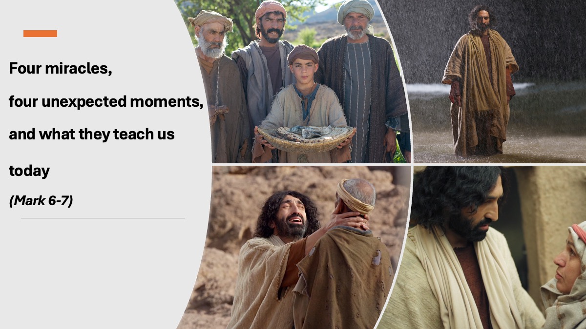 In Mark chapters 6 and 7 we read about four very different miracles… As we focus on these four miracle stories, we will learn what Jesus does that is unexpected, and what each of these miracles teach us…